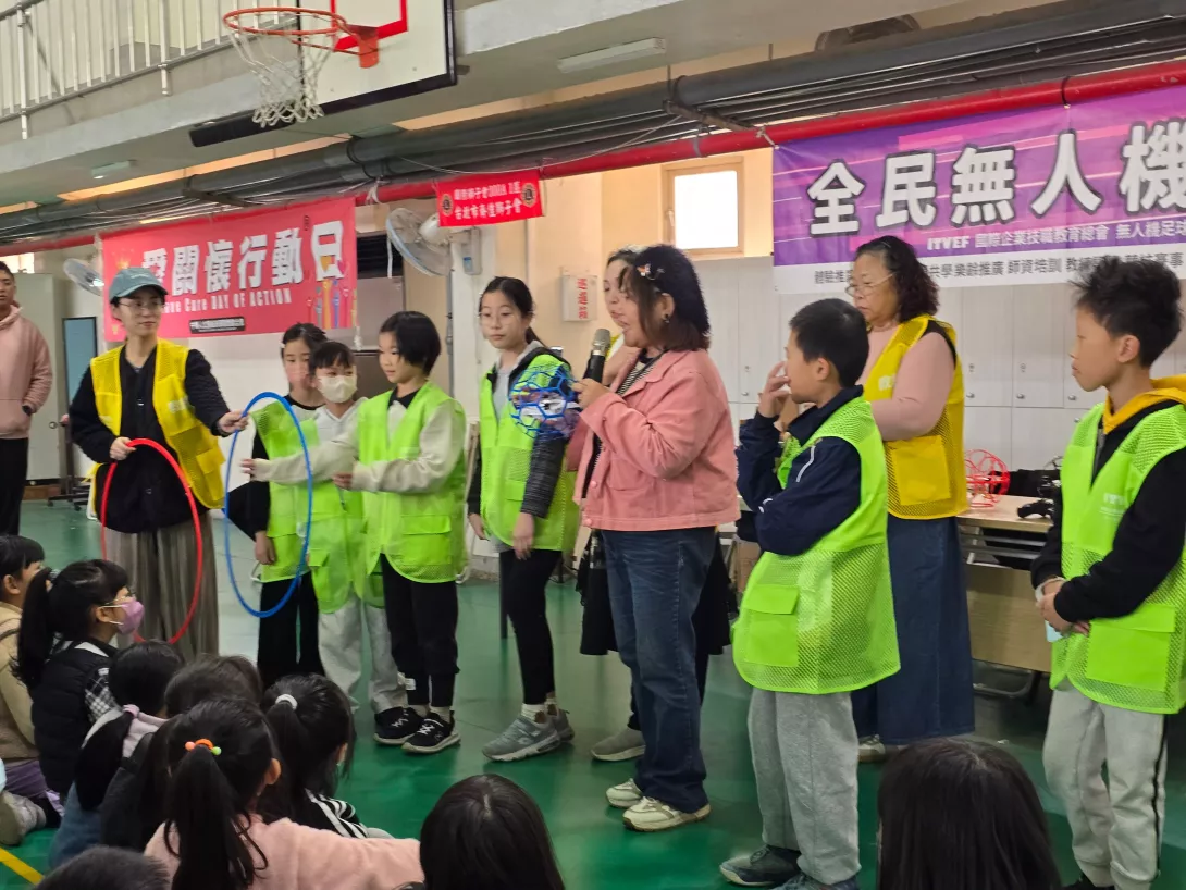 本次體驗活動以中正國小四、五年級學生為主要對象,現場特別規劃無人機障礙物訓練關卡,透過專業教練示範操作與分組實際練習,引導學生學習無人機的基本操控技巧,包括起飛、降落與方向控制,讓參與者在安全引導下快速上手。