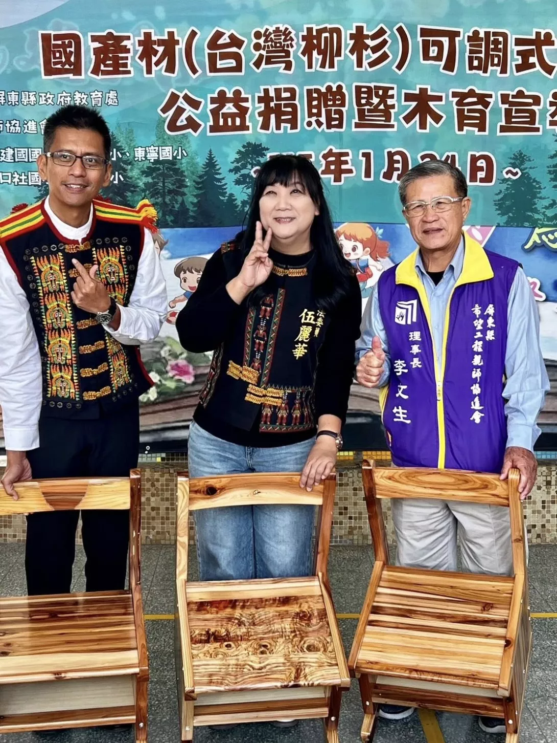 伍麗華在捐贈現場感性提及,早在17年前她任職於泰武國小時,就曾嘗試以八八風災後的漂流木為學生製作課桌椅。然而國產材因市場規模與自給率限制,價格始終偏高。她呼籲政府公家機關應率先示範,逐年編列經費採購國產材,唯有提高需求,才能帶動本土林業鏈的良性循環。