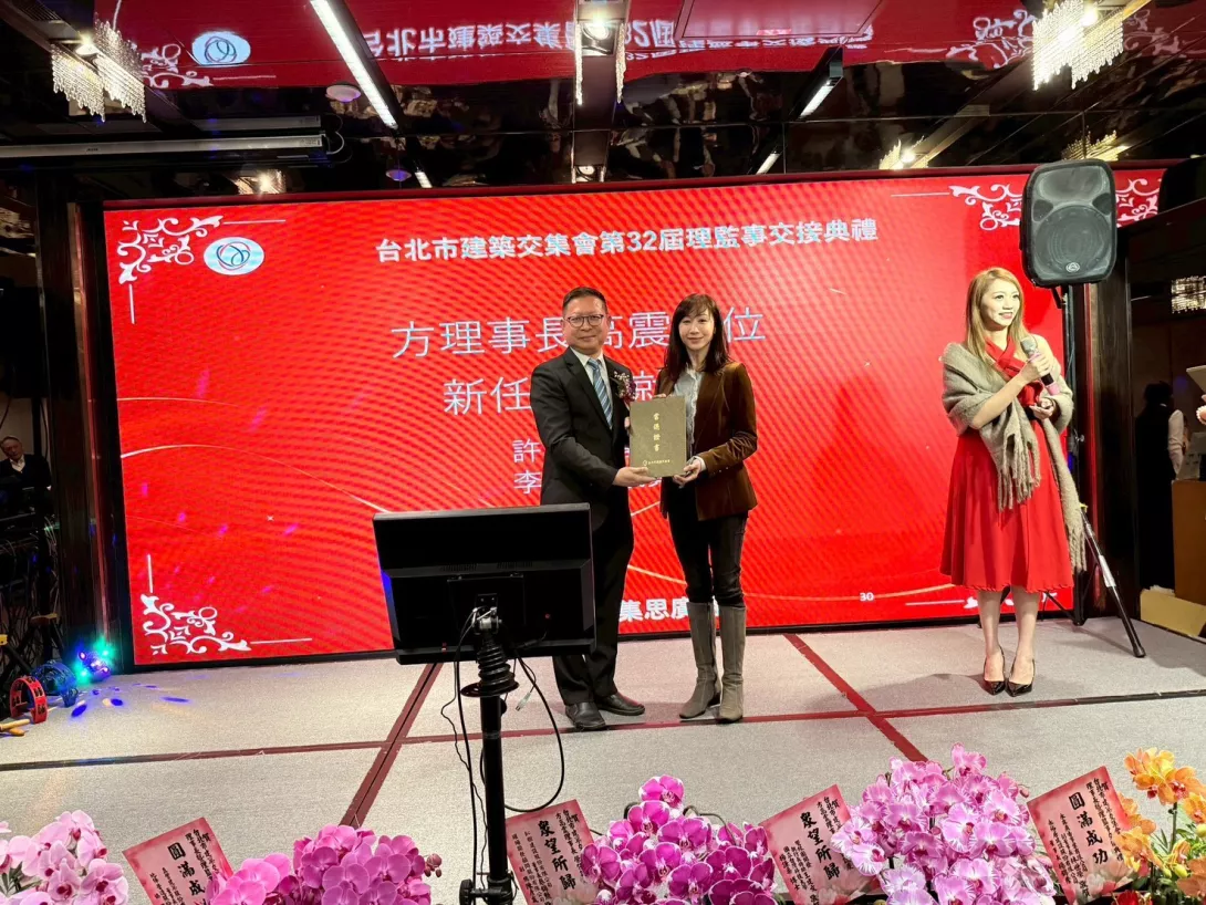 【台北訊】晚會燈光落定、合影快門聲此起彼落,台北福容飯店會場裡,一邊是老朋友握手寒暄、一邊是新任團隊上台致意。社團法人台北市建築交集會於民國115年1月22日(2026年1月22日)舉辦第32屆理事長暨理監事交接典禮,新任第32屆理事長方高震自第31屆理事長蔡名峻手中完成交接,並由榮譽理事長簡性琦監交。典禮在產官學代表到場見證下順利完成,象徵會務穩健傳承。