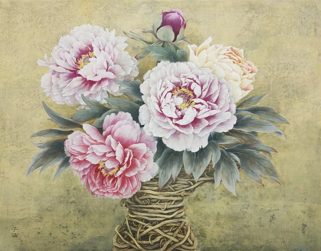 徐子涵【掬妳一簍清香】116.5x91cm 楮皮紙、胡粉、鑽石粉、雲母、礦物顏料、水干