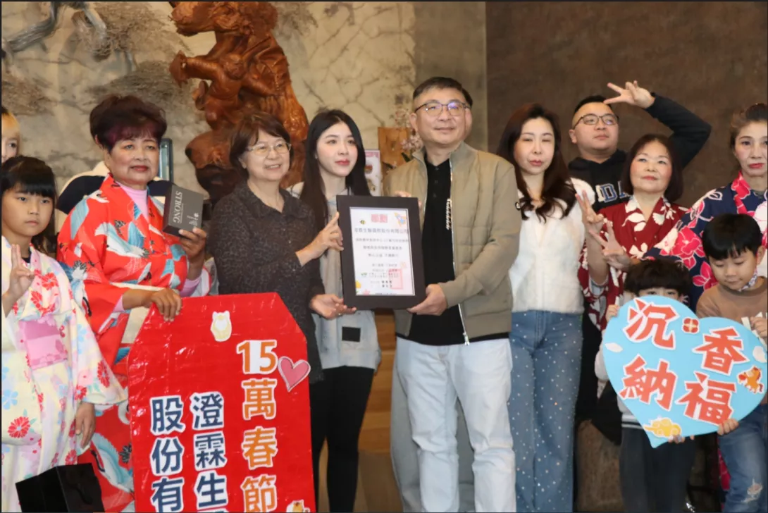 圖說:澄霖沉香董事長陳品宏與澄霖董娘贈送每戶祖孫2000元鼓勵金。