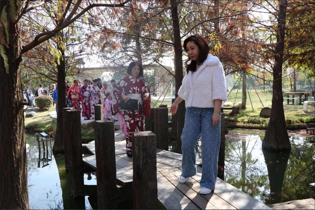 澄霖沉香的「澄霖董娘」、「澄霖寶寶」率領團隊們也身著和服,牽起穿上和服家扶阿公阿媽還有小孫子的手,來到雲林縣最強落羽松必拍的景點,尤其現落羽松金黃與橘紅交錯時刻,倒映水中如詩如畫,都讓家扶阿公阿嬤為之瘋狂,紛紛拿出手機請家扶社工們要拍美美的紀錄,回家給孩子們看,春節年假不用到外地人擠人,來澄霖沉香就對了。