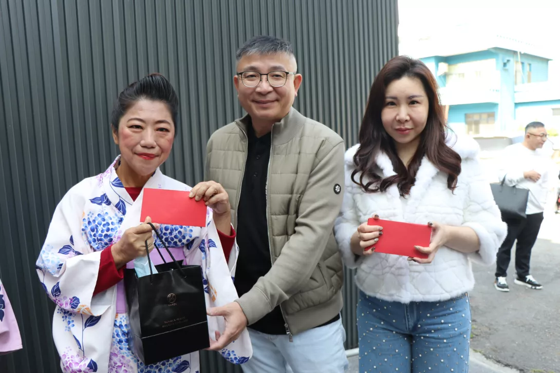雲林家扶郭阿嬤從澄霖沉香董事長陳品宏手中接到紅包驚喜:第一次來澄霖沉香、穿和服,走進日式庭園景致真水,還收到即將到來農曆年第一個紅包。讓郭阿嬤喜出望外直跟陳品宏董事長道謝,更祝澄霖沉香萬馬奔騰一馬當先。