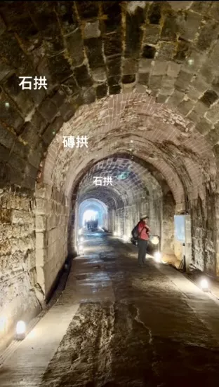 劉銘傳隧道建於清光緒16年(1890年) ,從隧道北口進入,首先可以看到隧道頂由紅磚砌成「磚拱」,接著看見觀音山石所堆疊的「石拱」,整條隧道由「磚拱」與「石拱」交錯著,側壁則有許多方形小孔及圓形木樑頭,為當年施工所遺留下來的痕跡。