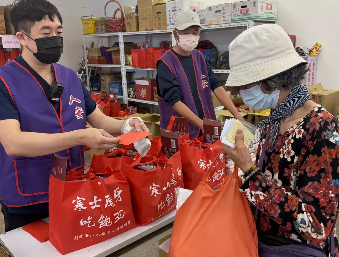 當天9點,邀請鹽埕區府北里林傳富里長,穿梭在街頭夜訪送禮,將愛心年禮與應急紅包雙手遞向寒士。一聲溫暖問候、一份關懷,如同立春前的微光,在最寒冷的冬末時,點亮新年的希望。