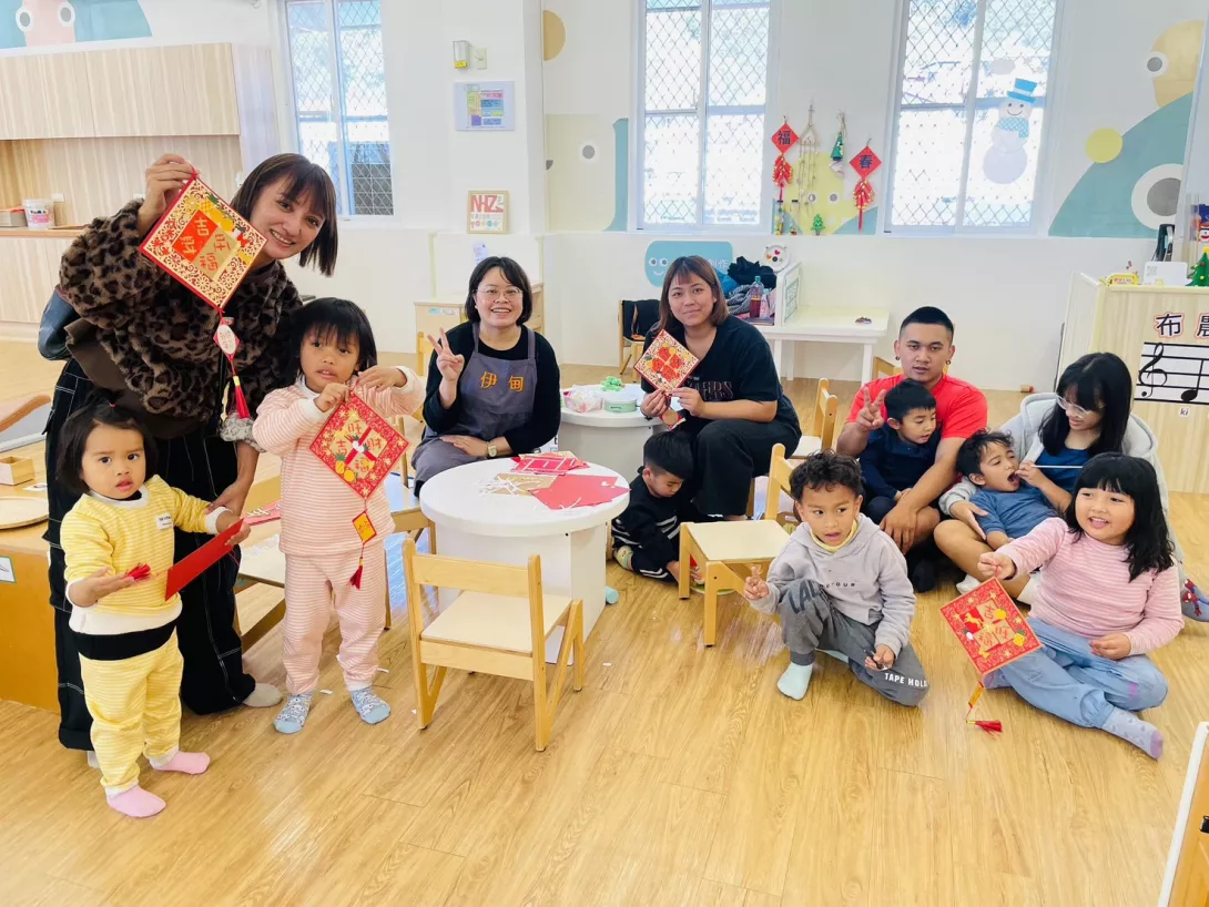 緊接著,親子一同投入春節吊飾的創作活動。教保員先帶領孩子觸摸不同紋路與材質的紙張、進行剪裁黏貼,鍛鍊精細動作的同時,孩子也享受一段優質親子陪伴時光。透過專注於紙藝,讓壓力在指尖流轉中獲得緩解,家長看著孩子完成作品後的自信笑容,成就感油然而生,成為轉化照顧壓力為正向動力的關鍵。