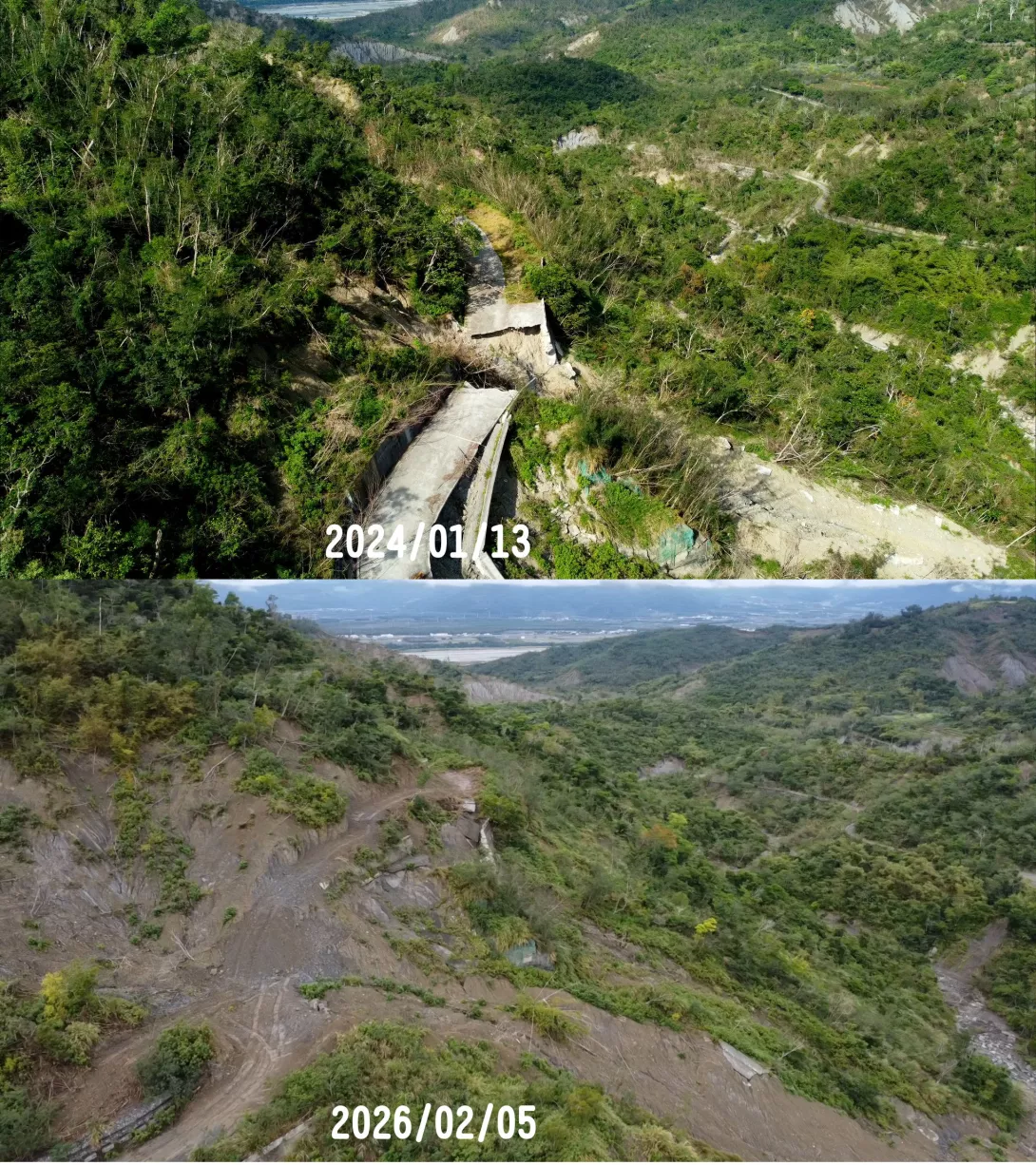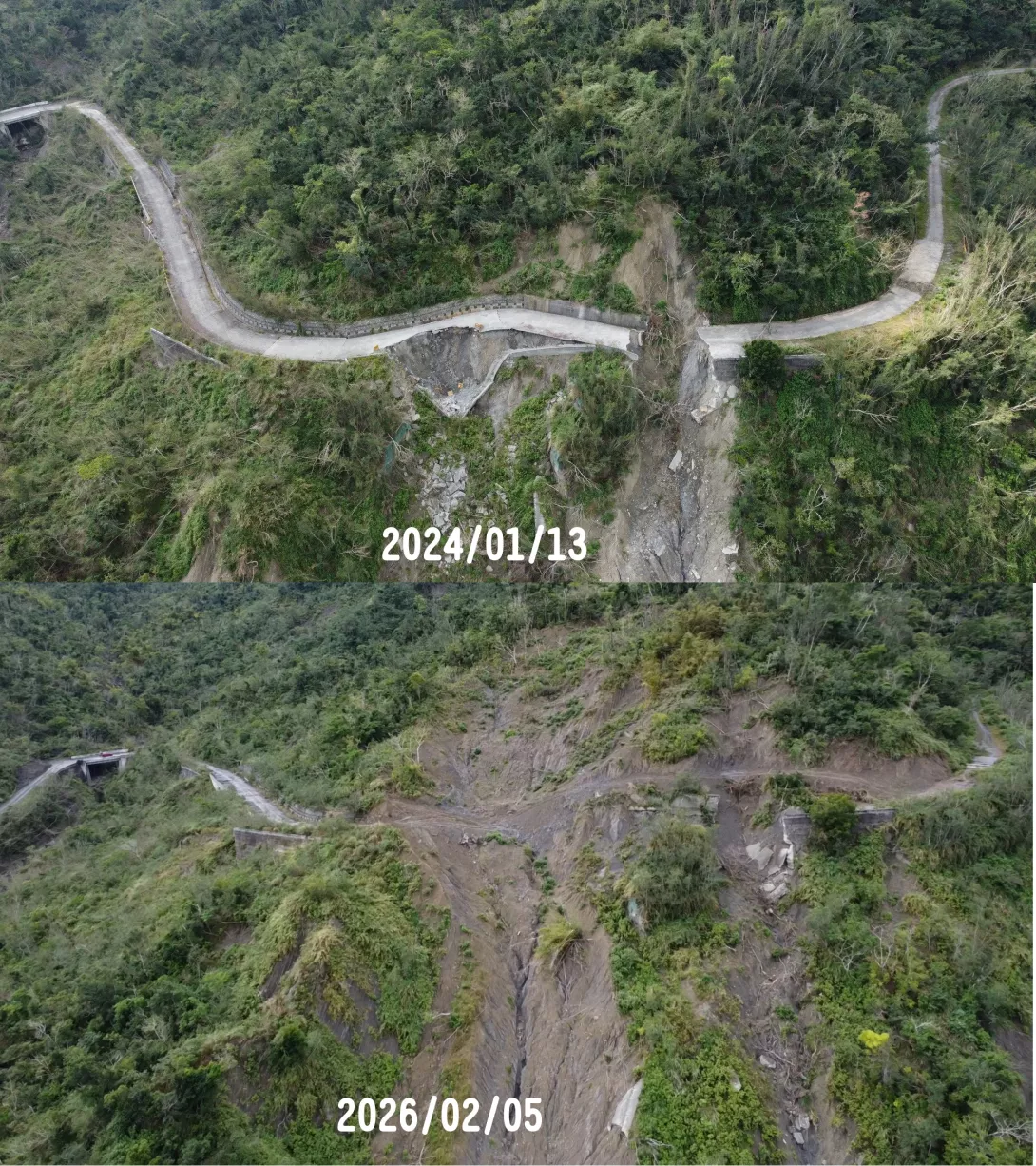 接下來是從停車的橋上往26.8k空拍的崩塌狀況
