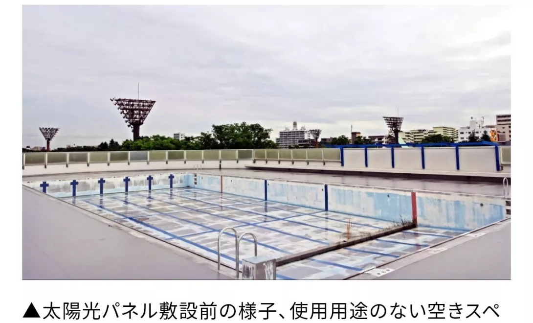 *圖說:在池尻中學屋頂游泳池鋪設太陽能板。(來源:UPDATER)