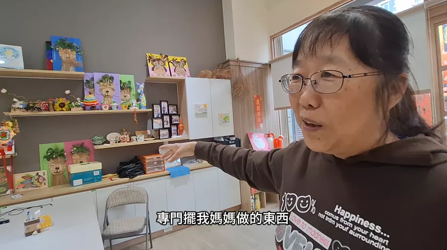 她甚至在家中特地清出牆面與櫃子,擺放母親完成的作品。