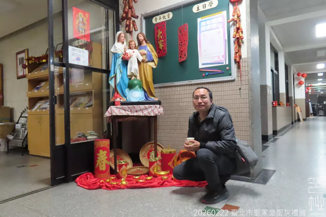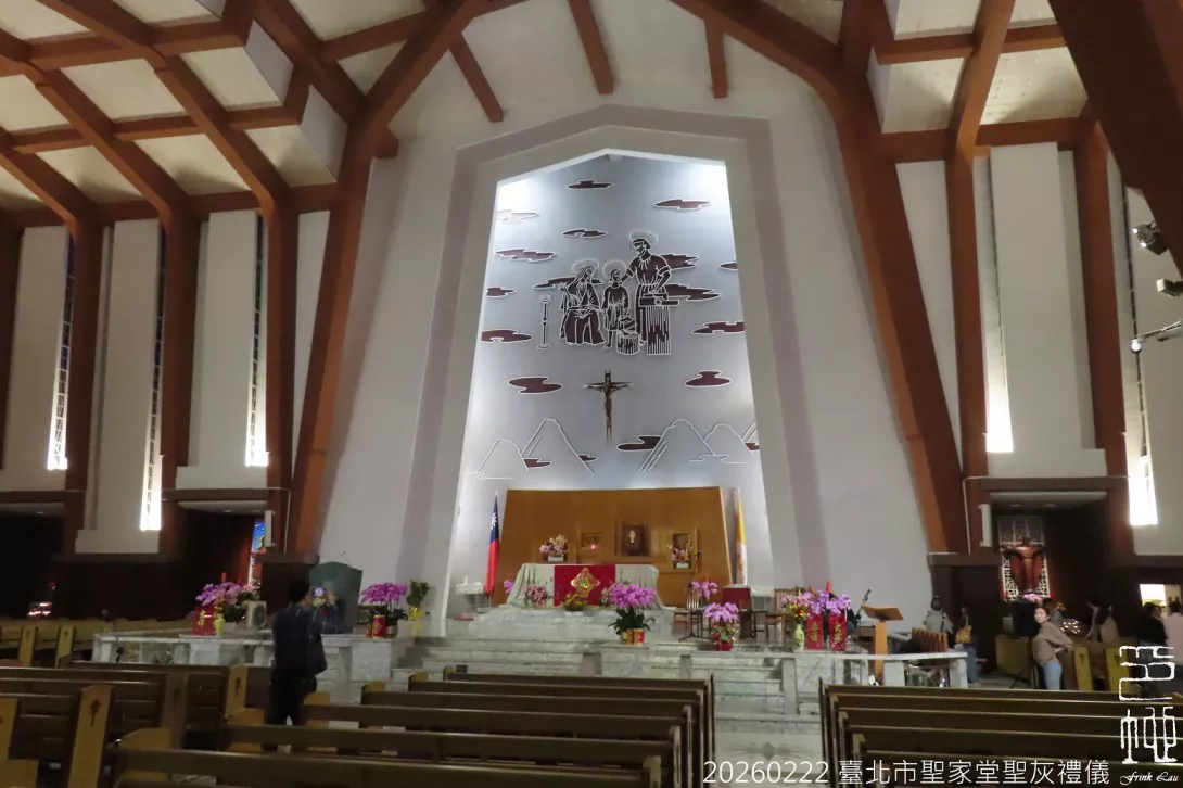 2026年天主教聖灰節適逢春節,所以在2月22日的彌撒有聖灰禮儀的儀式,教友們排隊讓神父在額頭塗上一點聖灰,本篇並附上2026年教堂的春節裝飾,Frink Lau 劉天倫攝於臺北市天主教聖家堂