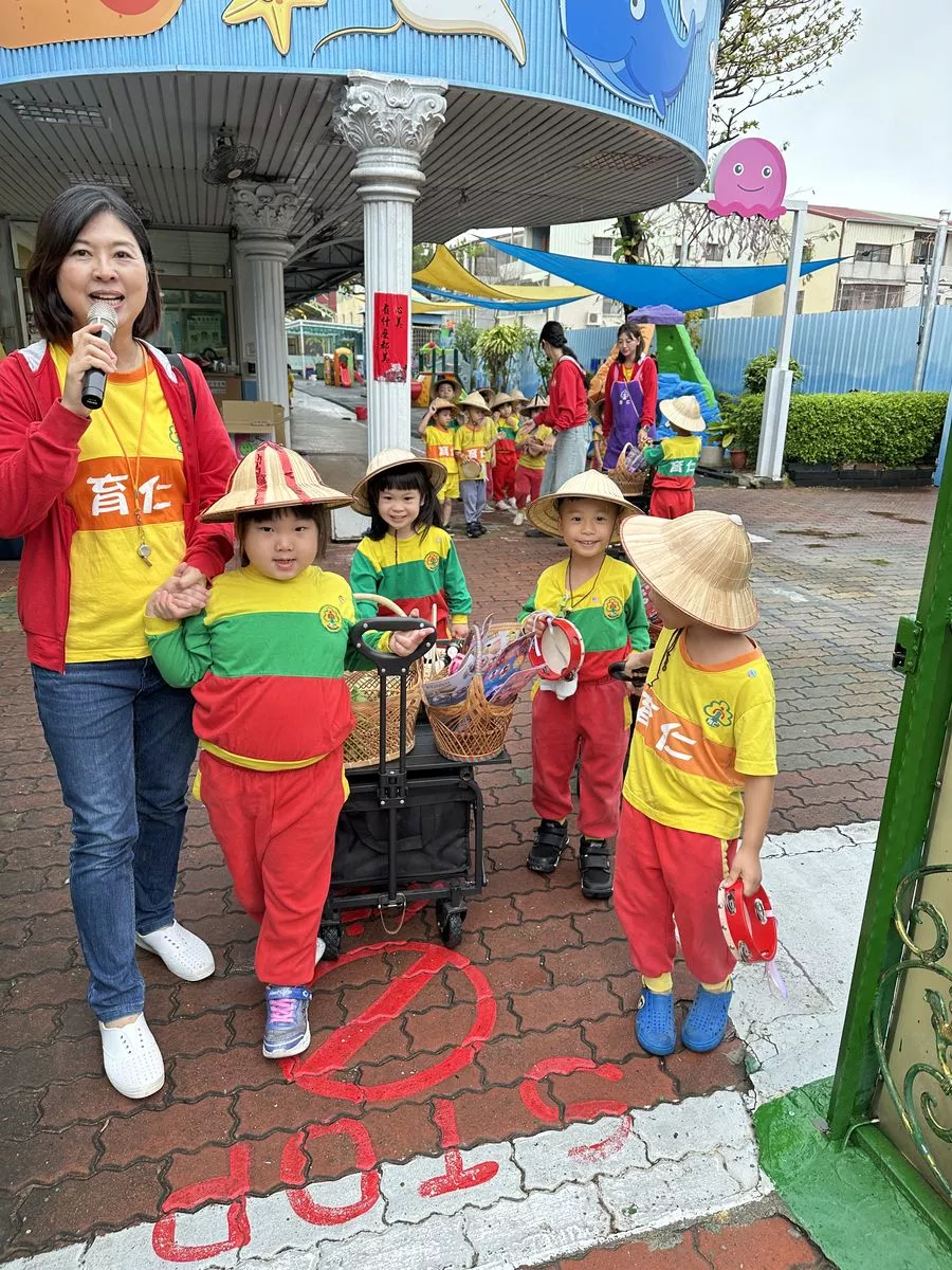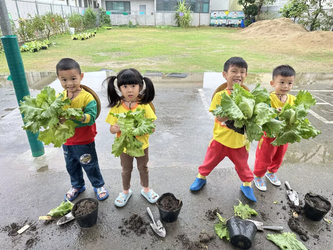 許園長相當認同教育的重要性,因緣下參與家扶的兒童啟力計畫,接觸到許多弱勢家庭,深刻體會到弱勢孩子常受限於家庭因素輸在人生的起跑點,除了學習資源不足外,在食衣住行各項基本所需都有匱乏,同時家庭需照顧生病的家人,或者主要照顧者自身有身心健康狀況,甚至有重大疾病等議題,影響家庭的生活維持和孩子的成長、就學需求。因此全校已是第四年配合新春義賣活動,原本學校就有推動食農教育體驗,蔬果都由小朋友輪流澆水照顧,讓小朋友體驗「從無到有」的種植歷程,更讓小朋友嘗試由錯誤中思考如何種得更好。許園長得知家扶每年都會舉辧無窮世代義賣活動,全校師生都極力支持愛心義賣活動,並將園內的蔬菜拿來義賣,從栽種、採收、包裝上架和義賣,都是小朋友自己來,成就感滿滿,另有師生齊力製作天然茶樹清潔液,以及熱心家長捐贈的玩具手錶和襪子,期透過小朋友的愛心傳遞邀請民眾做公益為開春討好采頭!小朋友們看到民眾及家長們購買自己努力栽種的蔬菜時,更是賣力的大喊「愛心義賣趕快來買哦!」。今年更特別選擇於元宵節進行義賣活動,除了搭配節日的介紹外,也讓小朋友們帶著感恩和回饋的心進入新的年度。