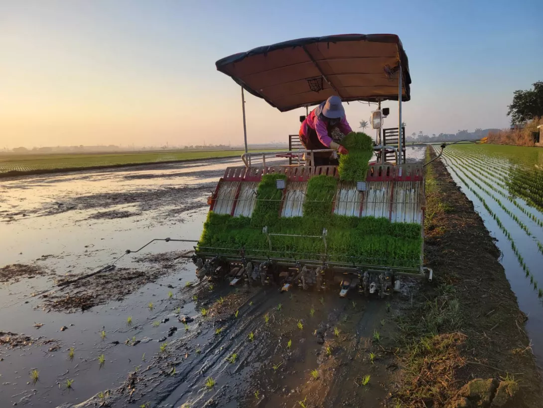 我的田插完秧,搭著插秧機去細雲村長田,即使我大力鼓吹九吋插秧的好處,村長太太說秧苗不要浪費,所以還是維持6吋插秧,村長幫我吸收多出來的秧苗費,真感謝還給我一個大又美味的高麗菜,村長太太說很難找到工人,她家的甘蔗園還沒人處理