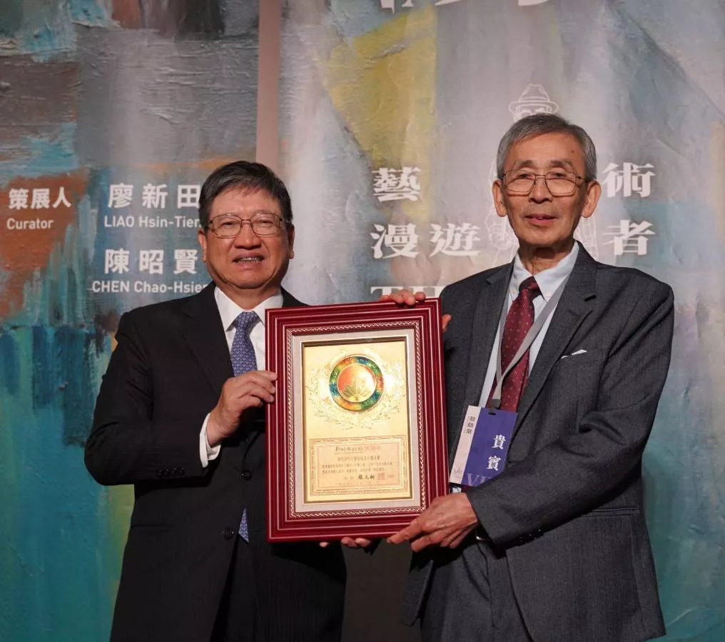 (楊文科縣長特別頒發感謝狀給從美國飛回參與盛會的蔡蔭棠次子蔡世英。記者林慧茹翻攝)