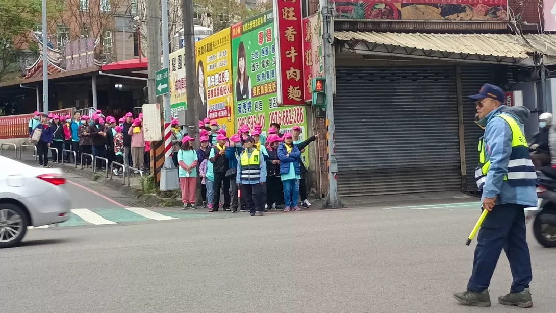 沿途社區巡守隊志工,指揮交通,確保每個路口,里民過馬路的安全。