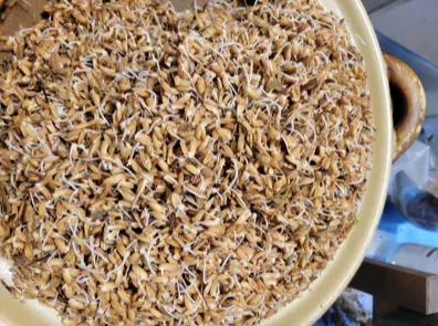 第三天傍晚 換新鮮的水讓稻穀保持濕潤後 把水倒掉
