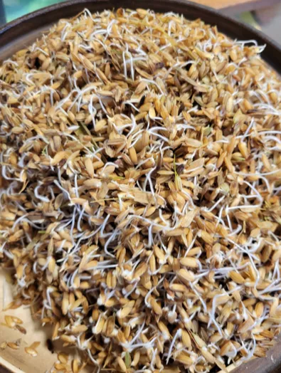 第三天早上 將水倒掉 換新鮮的水讓稻穀保持濕潤後 把水倒掉