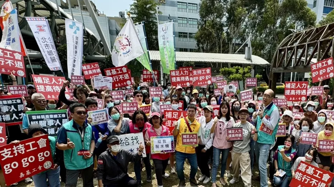 嘉基工會爭取調薪訴求「補足人力,提高待遇」,期望院方能重視員工勞動權益。【記者 鄭羽婕/擷取自嘉基工會Facebook粉絲專頁】