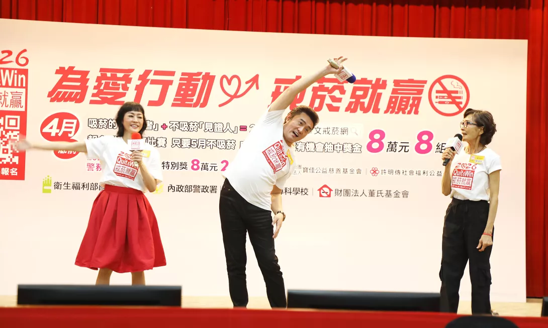 國民健康署沈靜芬署長宣布,「2026戒菸就贏比賽」增設「警務人員成功戒菸專屬獎」(8萬元有2組),也首創醫事人員助人戒菸也有獎!快帶著健保卡到全國近3000家合約醫事機構戒菸,同時上網報名「2026戒菸就贏」,記得可填上一名醫事人員擔任「戒菸關懷人」,只要您成功戒菸且抽中獎金組,「戒菸關懷人」就可加獲1萬元獎金。