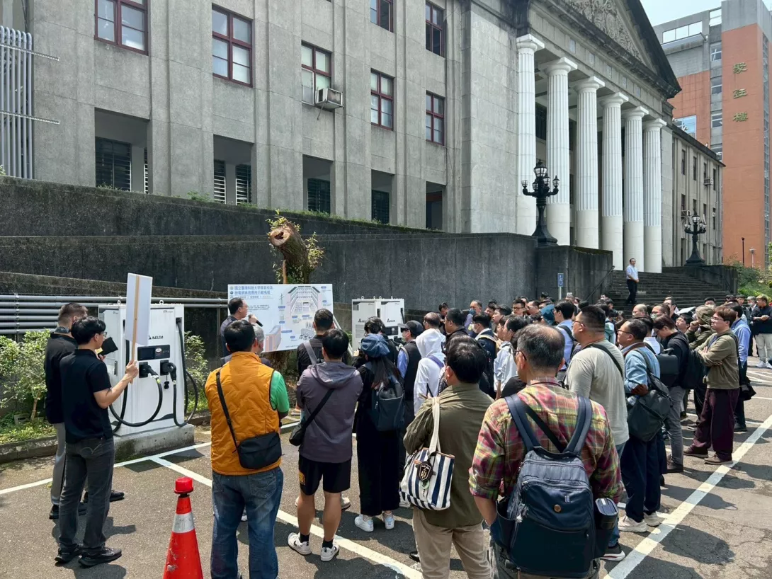 ▲與會嘉賓實地參訪設置於台科大華夏校區的光充儲設施