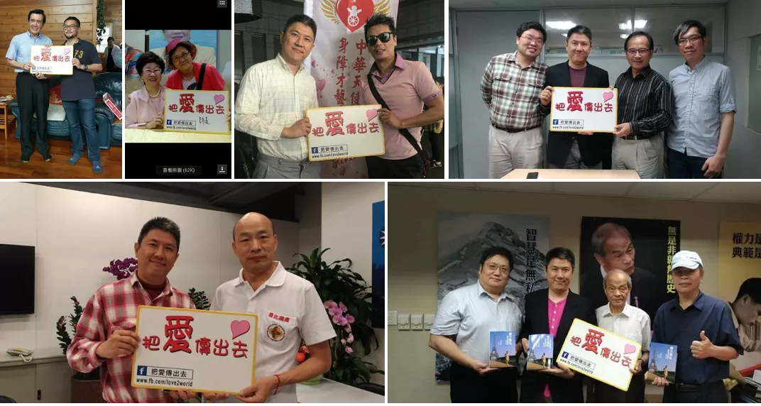 數位公益家張成先表示:「馬英九 (照片左上角)是公益前輩,一路走來,始終如一。愛心公益不落人後,其投入公益基金會成立之初(詳見相關延伸新聞)就協助推播相關公益活動,如今基金會運作有成 ,然而大家(也包括自身與父母親)的安康都微恙,所以此時此刻,為大家以及所有芸芸眾生裏面的傷痛患者默默地祝禱與祈福才是做人做事的基本原則與態度。」 延伸閱讀: 馬英九基金成立,他說:超越選舉(不斷更新)https://www.peopo.org/news/344015