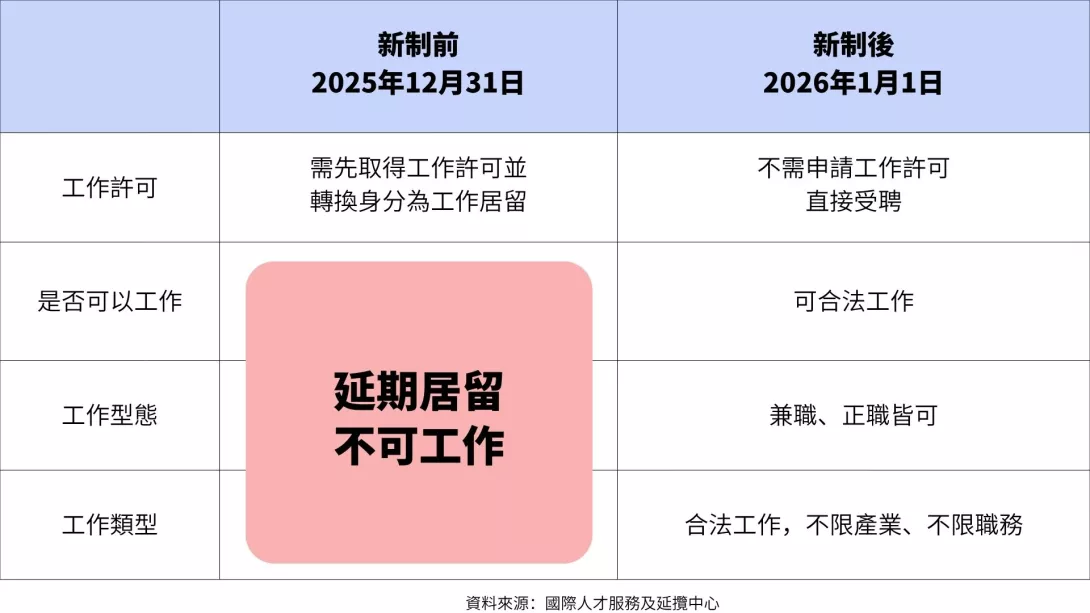 為了因應近年台灣面臨的人口結構快速轉變,以及少子化與高齡化對經濟與產業發展的影響,國家發展委員會修正《外國專業人才延攬及僱用法》,並於民國115年1月1日正式施行。此次制度變革使僑外生<註一>居留更具彈性,為外籍人士長期留台提供了更便捷的管道。