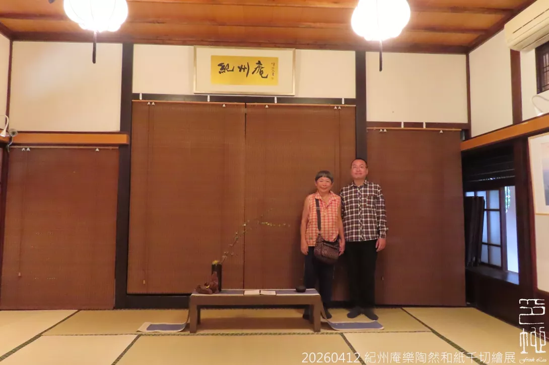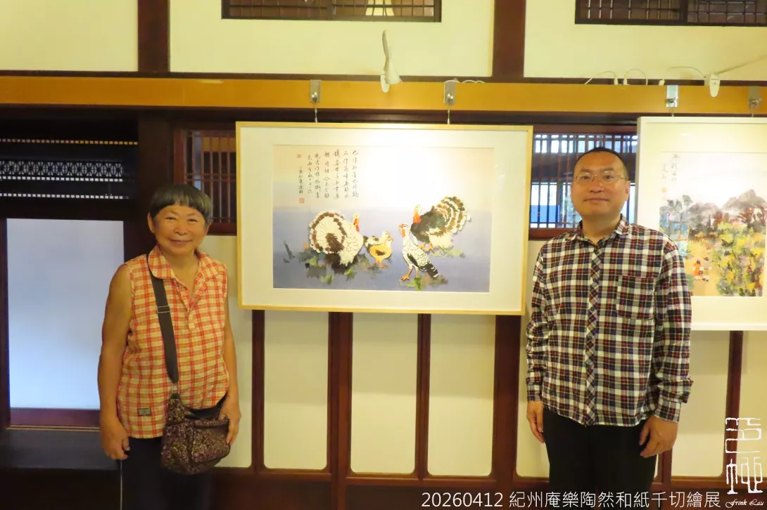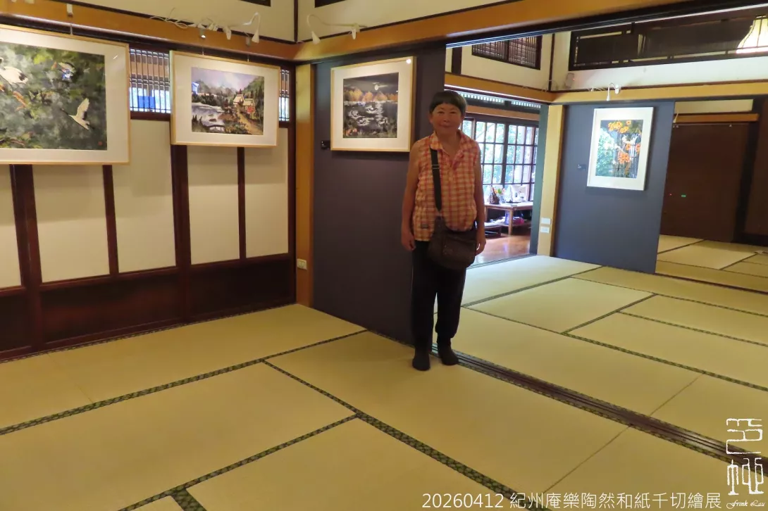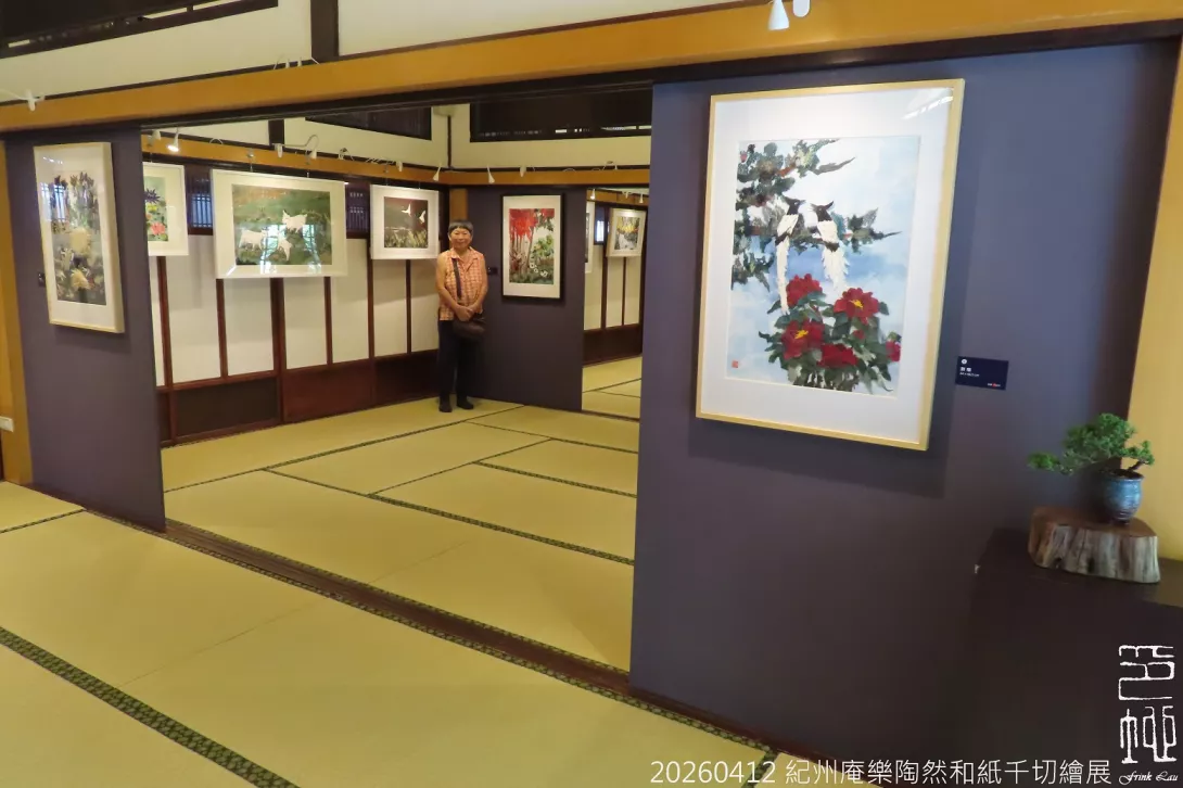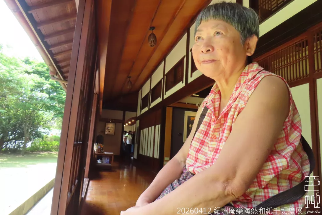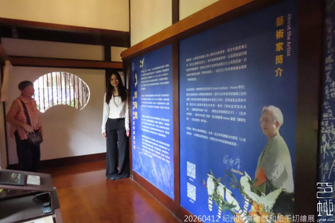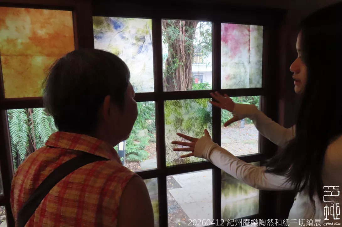 2026 紀州庵「樂陶然」和紙千切繪展,展出陶曉清女士的千切繪作品,策展人並將和紙的照片放大貼在窗戶的玻璃上以展示和紙紋理,Frink Lau 劉天倫和母親 4 月 12 日參觀並拍攝