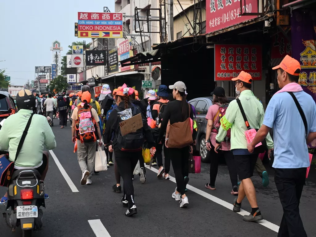 ▲跟隨白沙屯媽祖年度繞境的43萬香燈腳大軍,於4月15日清晨進入永靖鄉內。(圖/記者周厚賢攝)