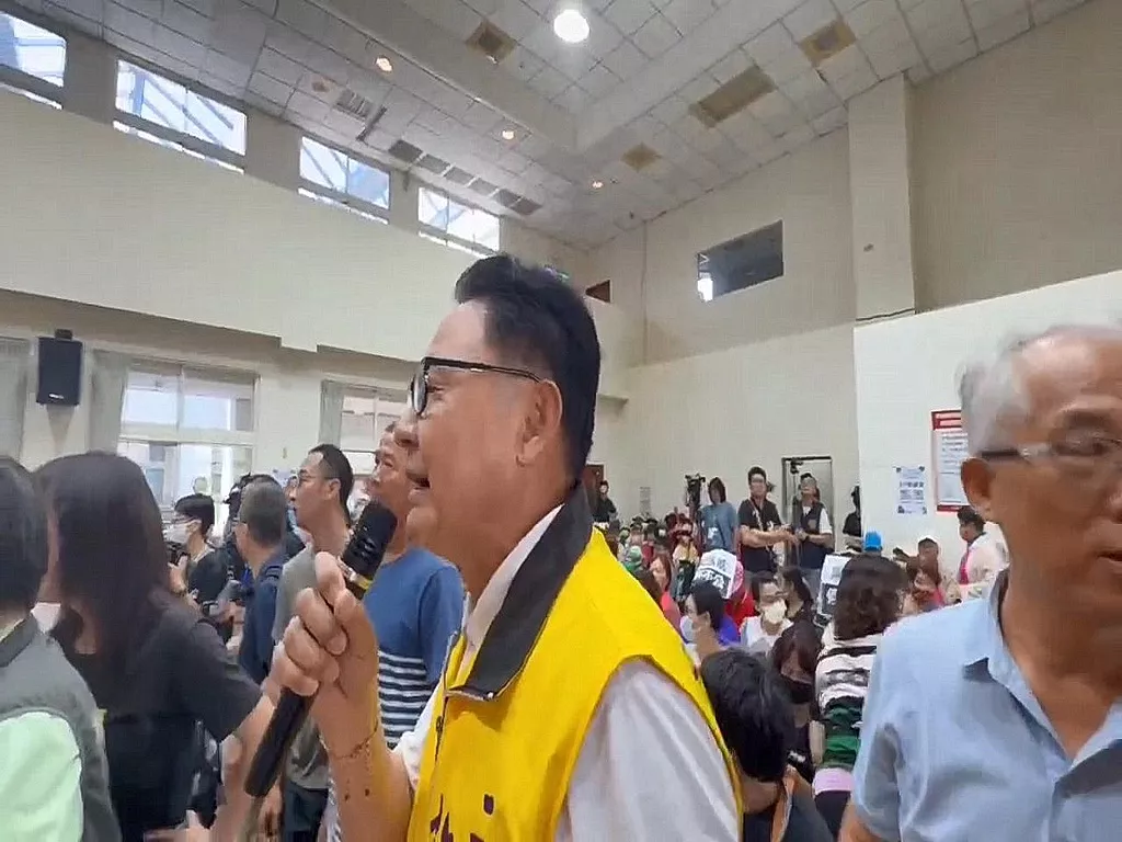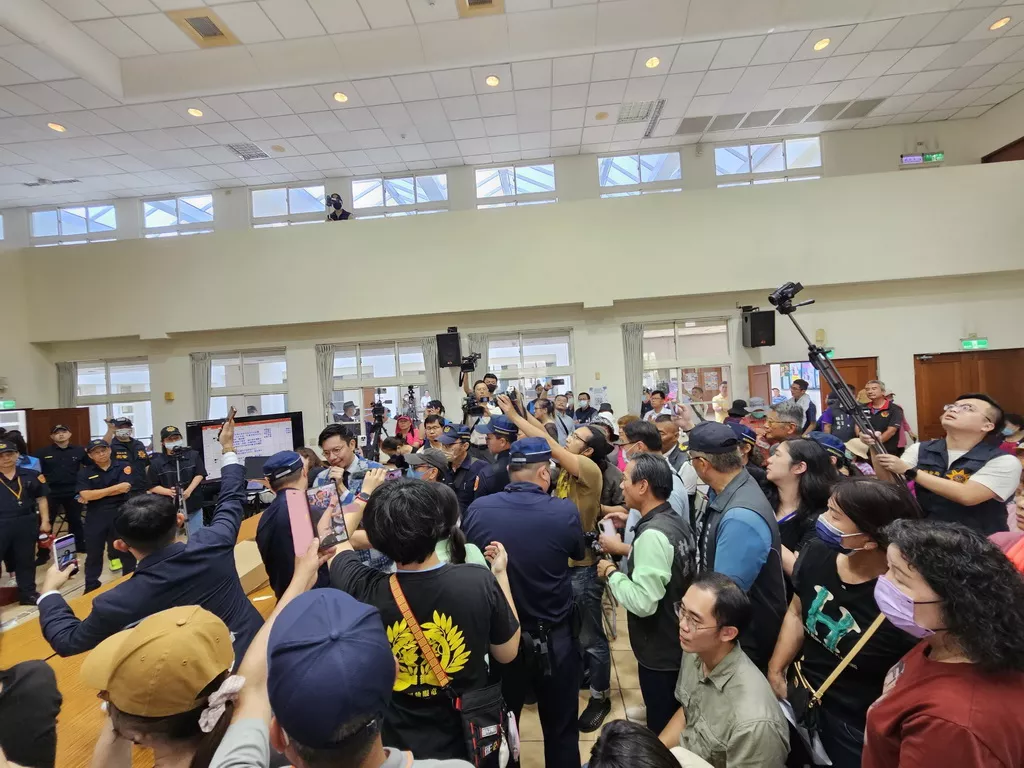 ▲先前召開第二階段環境影響評估範疇界定會議發生衝突,南投縣府延續會議中,上百名名間鄉民出席表達反對立場。(圖/記者周厚賢攝)
