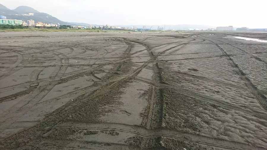 每年3到7月,是東方環頸鴴的重要繁殖期。這片位於淡水河口與台北港之間的濕地,是北台灣重要的水鳥繁殖棲地。然而現場仍可見車輛進出留下的輪胎痕,顯示人為干擾持續存在。