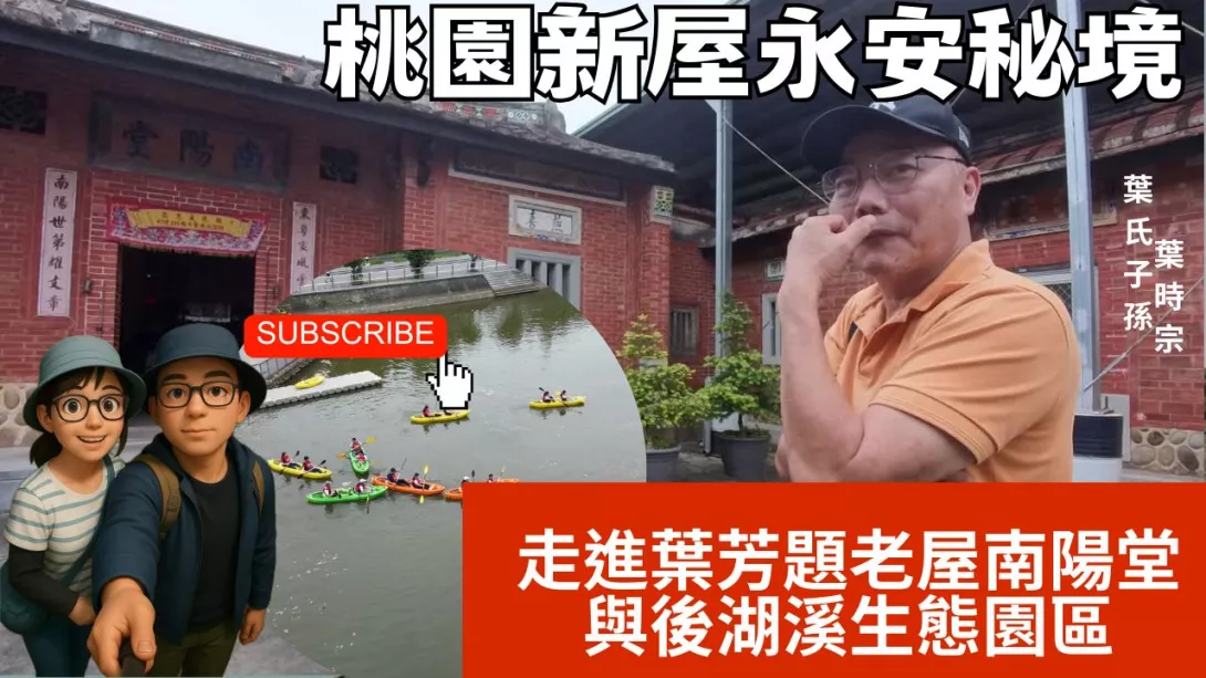 桃園新屋永安一帶,除了海岸景觀與漁港風情之外,也藏著兼具歷史與生態價值的地方風景。從葉芳題老屋,也就是葉氏南陽堂,到後湖溪生態園區,旅人能在短短一段路程中,同時看見地方家族建築之美,以及沿海濕地環境的自然樣貌。影片介紹播放