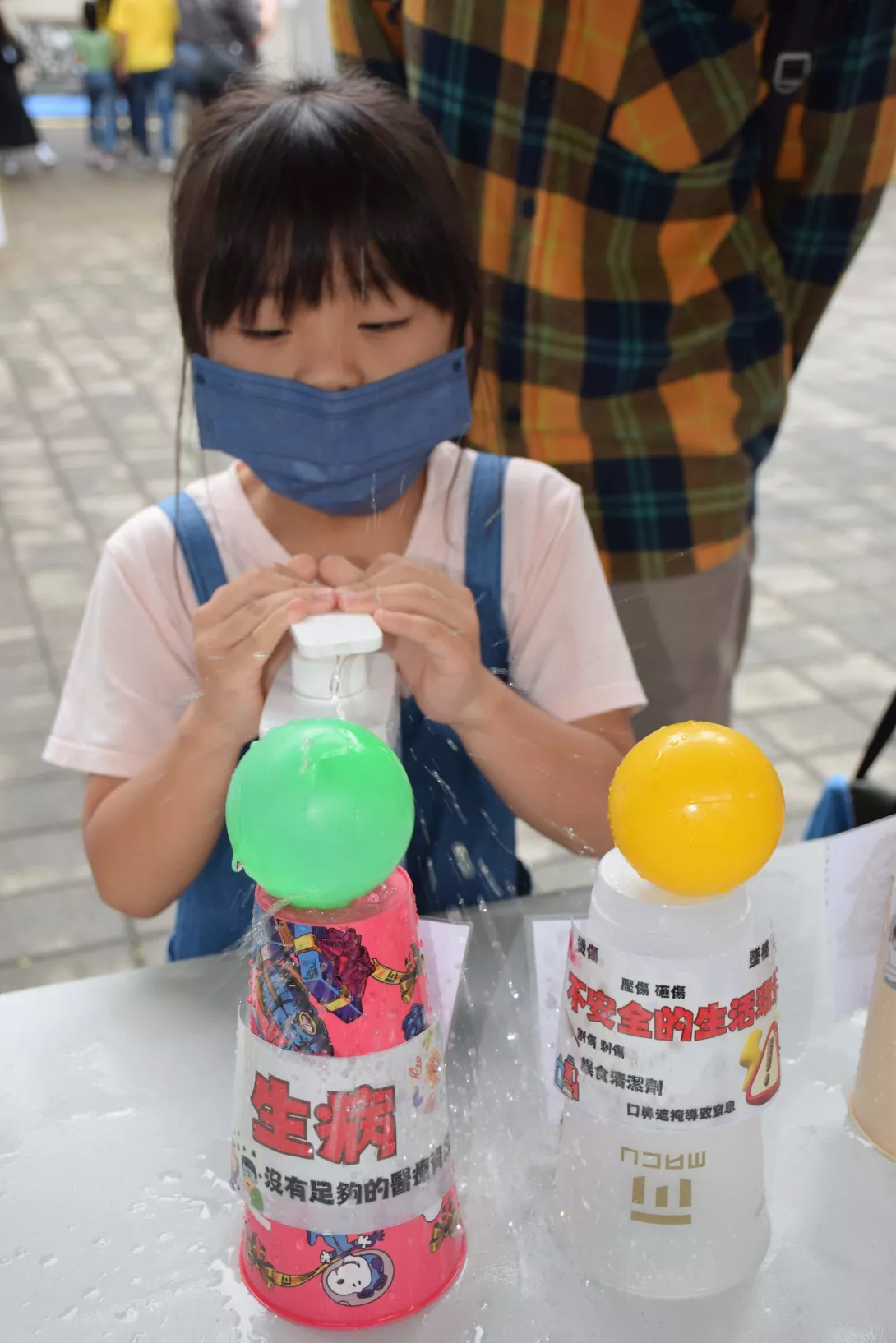 現場人氣最高的「打敗怪物」關卡,邀請孩子以水槍擊退象徵成長阻礙的小怪物,包括貧窮、飢餓、疾病、霸凌、毒品、網路等,讓孩子在遊戲中建立保護意識,每位孩子都噴的不亦樂乎。