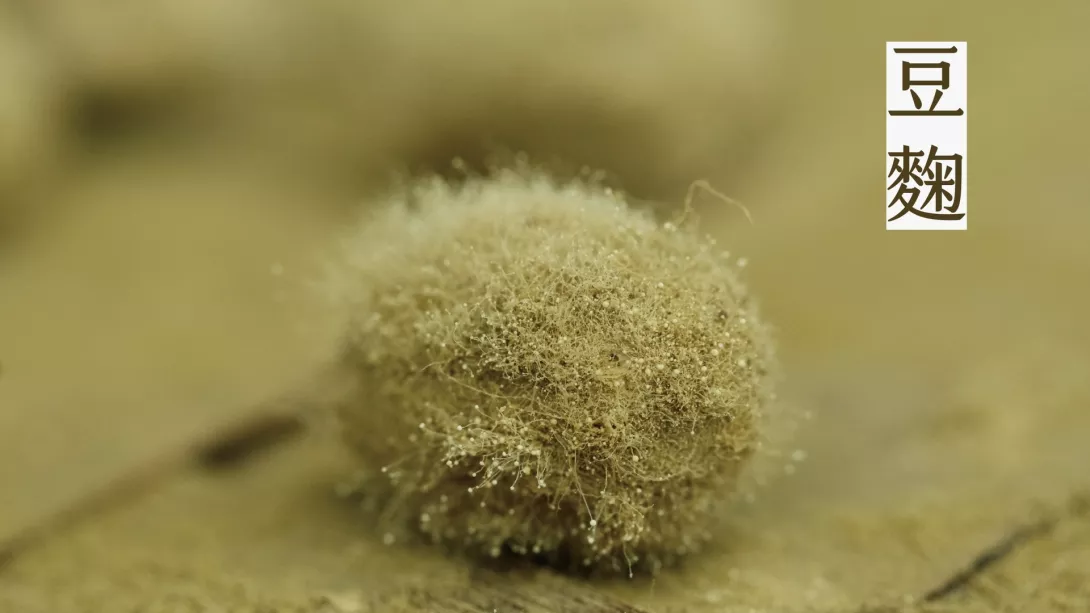麴菌接種在黃豆或黑豆上發酵而成,麴菌長入豆類裡面的過程也稱為「入麴」,是傳統醬油製成中的重要步驟。【記者 鄭羽婕/擷取自御鼎興純手工柴燒黑豆醬油Facebook粉絲專頁】