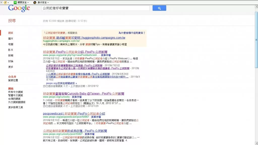 好奇寶寶忘記介紹PeoPo也會主動介紹公民記者給這個平台,例如用「公民記者好奇寶寶」搜尋就可以找到當時介紹的報導