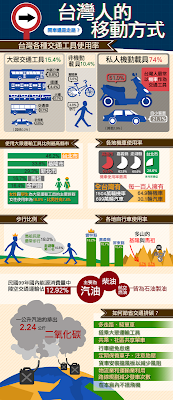 交通部這兩年透過問卷調查,來了解台灣民眾平常最常使用什麼樣的交通工具,2012年4月所公佈2011年調查,這是第一次納入離島的數據,讓整份統計成果能呈現出城鄉差距,也讓人探知本島與外島的差異。
