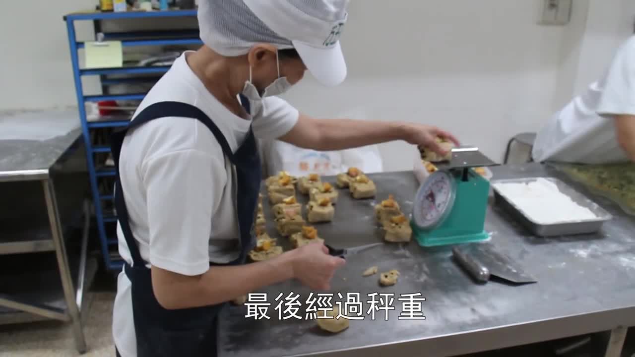 經過秤重後,餡料容量一致的堅果饅頭。