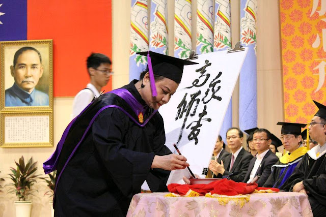 本次畢業典禮有2位表現傑出的畢業生,值得讚賞表揚,其一是國寶級豫劇皇后王海玲,現任臺灣豫劇團藝術總監,可以說成就非凡;曾獲得教育部第1屆民族藝術薪傳獎、美國紐約亞洲傑出藝人獎、豫劇藝術終身成就獎等榮耀,仍然積極進修學習,取得「表演藝術」研究所學位。