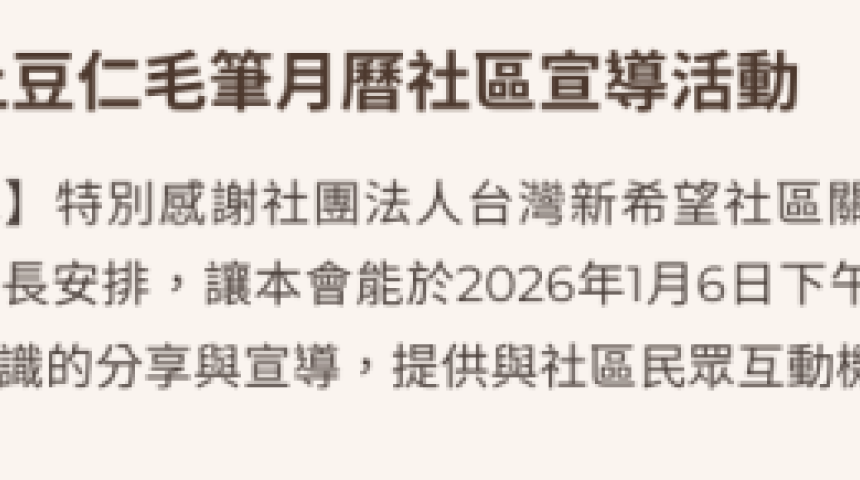 2026土豆仁毛筆月曆社區宣導活動新增新希望據點一處