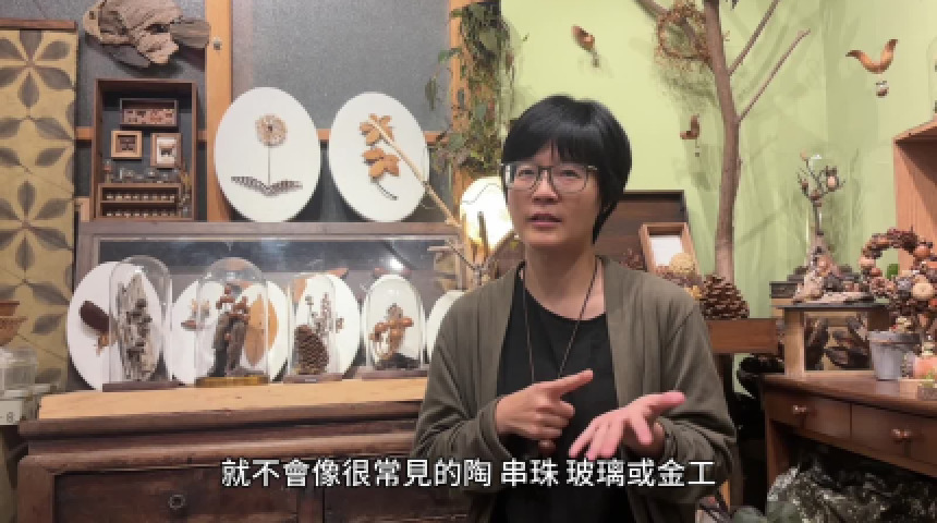 黃阿皮撿拾落果種子 巧手做成項鍊飾品
